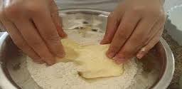 polvilhadas com farinha, antes de receberem a mistura para assar.